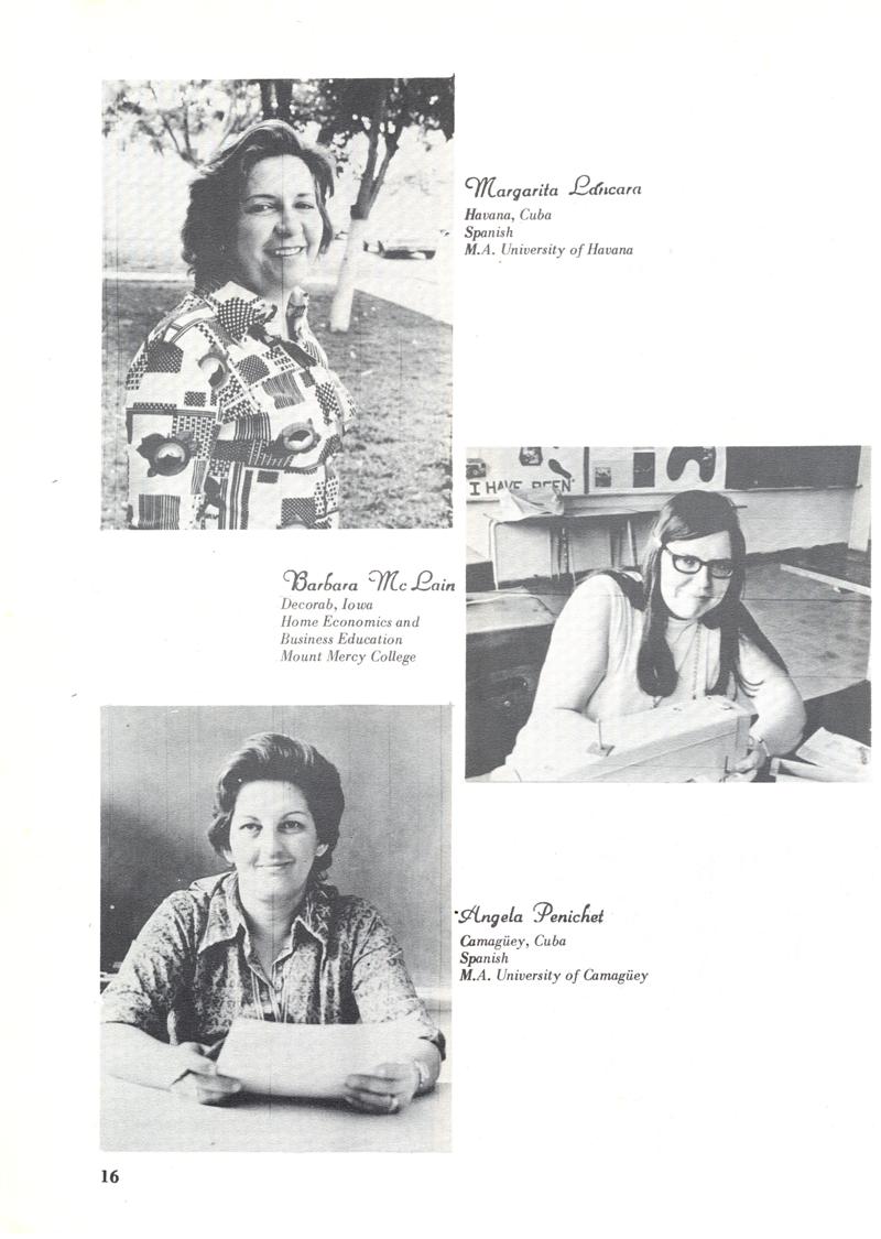 This yearbook is the 2nd of two yearbooks that has been brought to you courtesy of Barbara McLain Henderson, who sent me both of her valuable & irreplaceable yearbooks - 1974 & 1975 - all the way from Australia (!) to allow me to scan it & post it here so that it can be shared by all of us. Now that's what I call alumni dedication and enthusiasm! From all of us, un millón de gracias, Barbara!