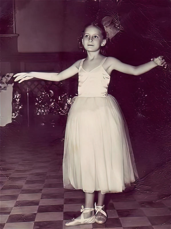 Pat dressed up as a ballerina. Her ballet