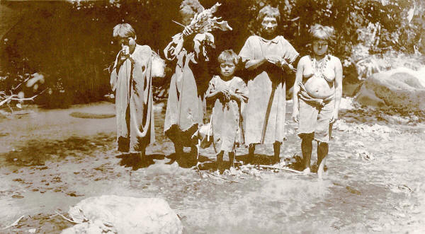 This group of photographs was taken by Steve's grandfather. The year they were taken is unknown, as is the location and the name of the tribe(s) that the images depict. Not of the Motilone nor Guajiro tribes, the white pancake clay on the faces of some of them is surely an identifier as to their tribe, as are perhaps some of the facial markings. But regardless of their identities, these priceless images speak, I believe, for themselves.